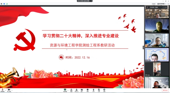12月16日,公司测绘工程系组织教研活动,学习宣传贯彻党的二十大精神。公司副经理胡良柏参加,会议由测绘地理信息教研室主任王润科主持。